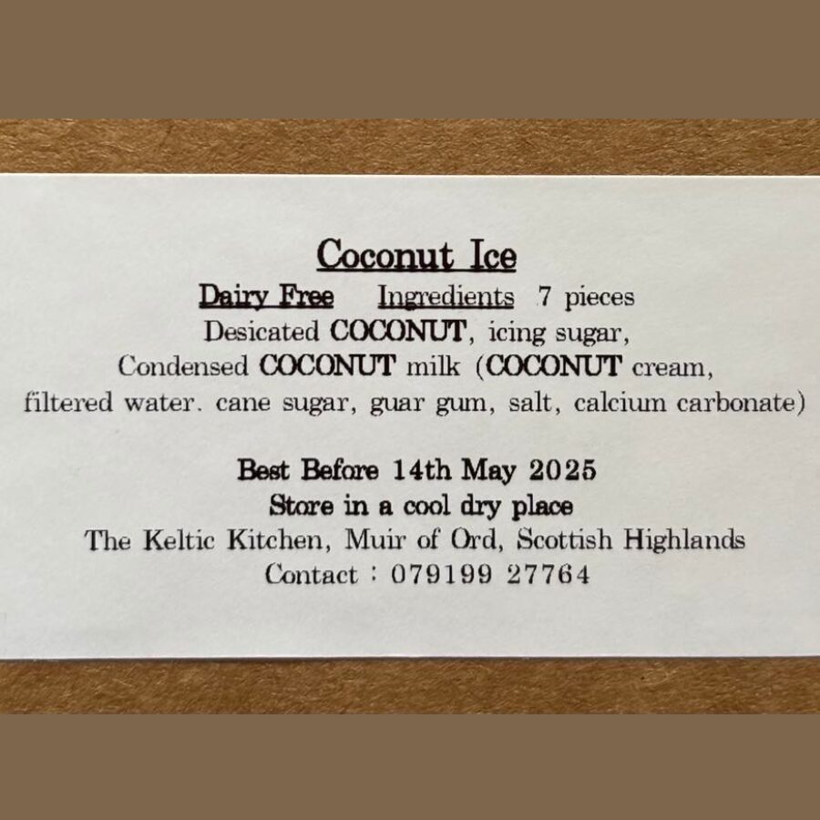 Ingredients: Desiccated COCONUT, condensed COCONUT milk (COCONUT cream, filtered water, cane sugar, salt), icing sugar, toasted coconut
