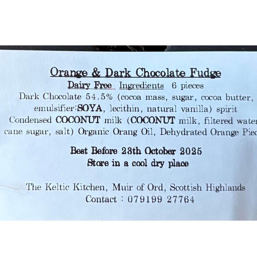 An indulgent fudge, made with dark chocolate and orange. It is completely dairy free so everyone can enjoy it.