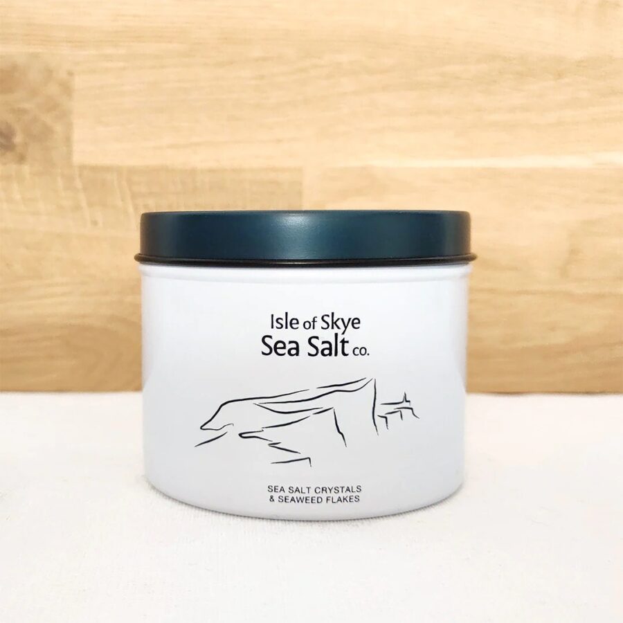 This sea salt is harvested on the north coast of the Isle of Skye, using only the sea, the sun and the wind. A blend of the best that Skye’s seas have to offer: Iconic Sea Salt with Skye-grown seaweed. The seaweed adds a stunning umami taste. A unique twist to add to cooked fish or vegetables. Packed in a recyclable aluminium box, it will be perfect on your kitchen counter.