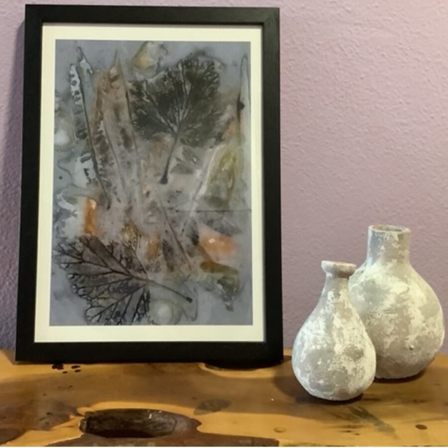 A eco print made with leaves. The maker finds the process very rewarding and she never knows how things will turn out! These are “Giclee“ printed which is a superior quality print process used in fine art as it gives a beautiful clarity of detail. The paper used is also superb quality “cotton smooth”. As framing art is a matter of individual taste these prints are not framed and posted rolled in a cardboard tube protected. Price includes UK Postage.