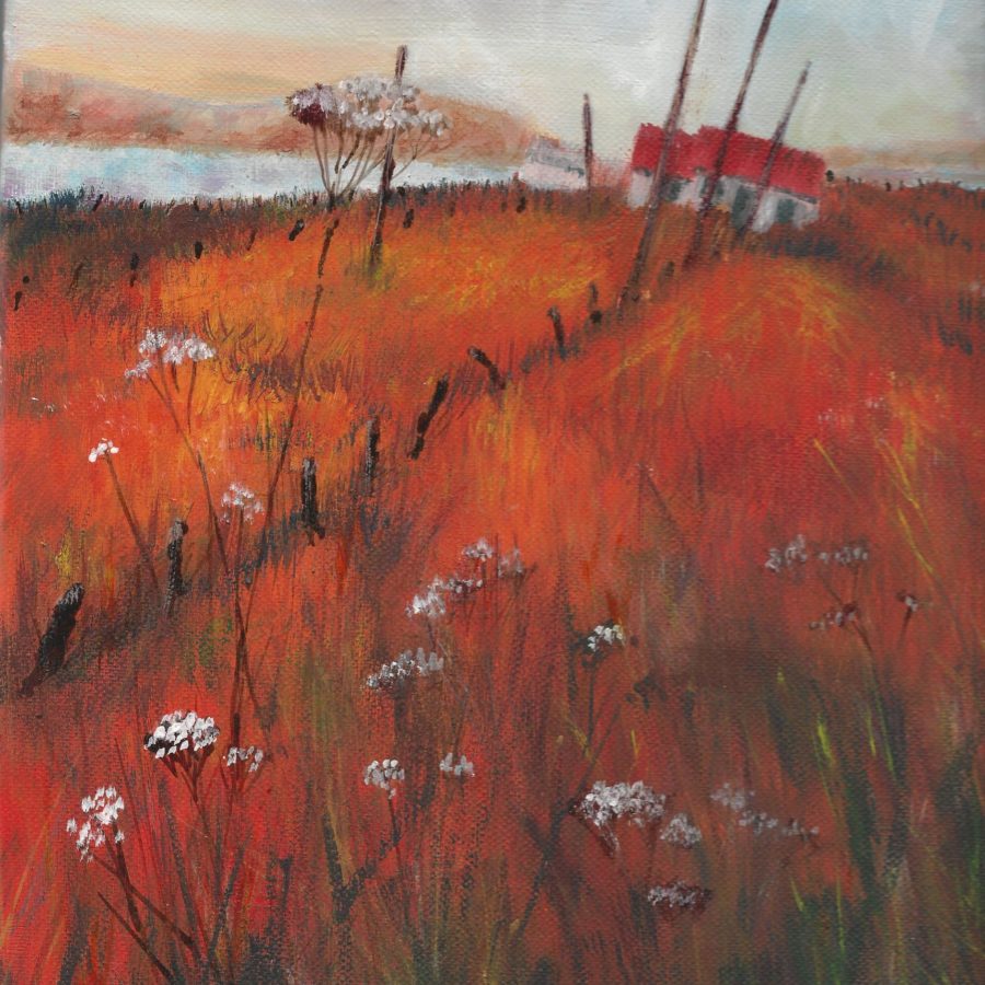 A box canvas acrylic painting of Dunnett Head, ready to hang.