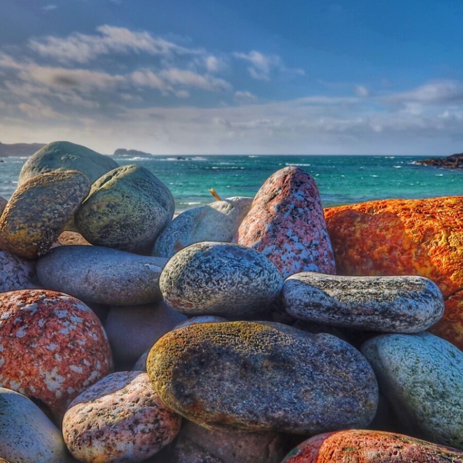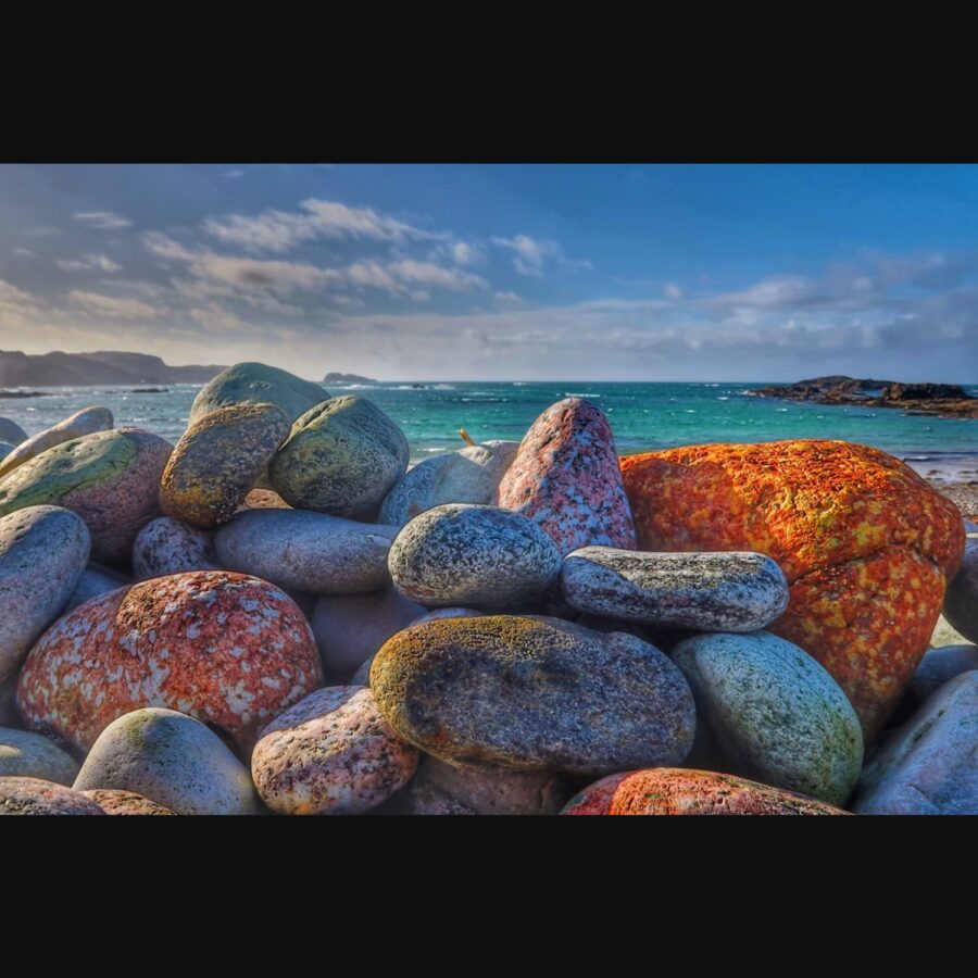 A matte aluminium print with hanging system of Camus Cuillin an t-Saimh, Iona. Not framed.