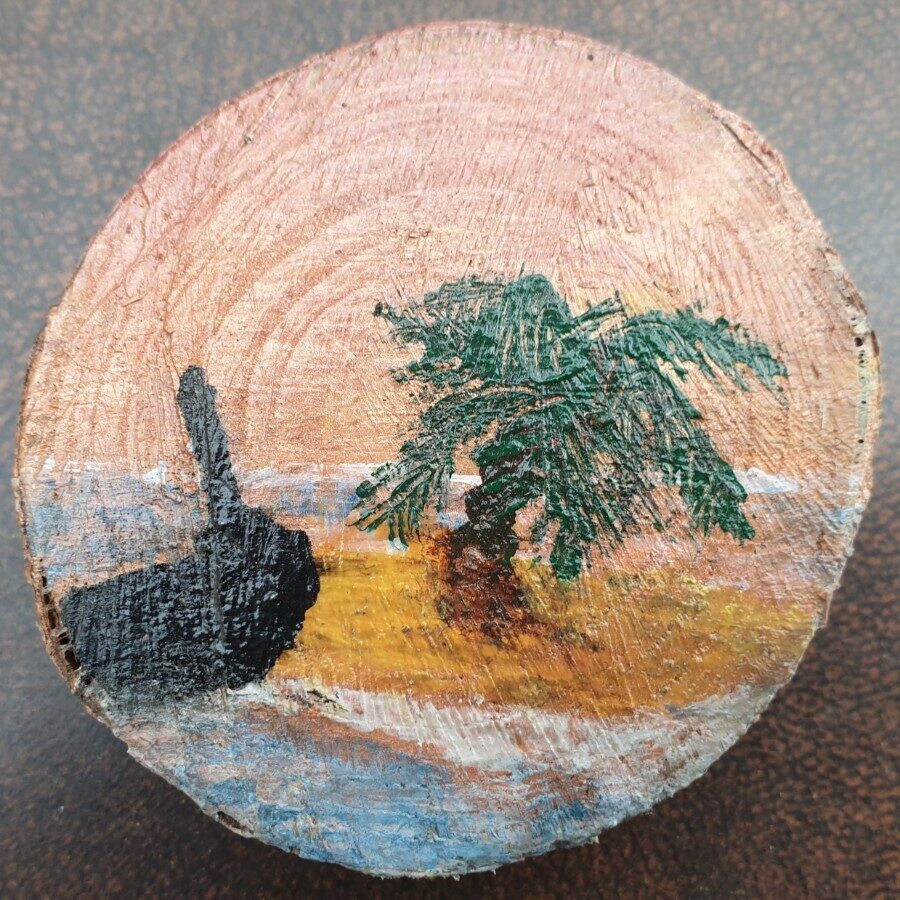 Castaway is an acrylic painting on a piece of spruce - this wood was sourced from our own wood at Stempster, Caithness. Part of the Whimsical Paints collection.