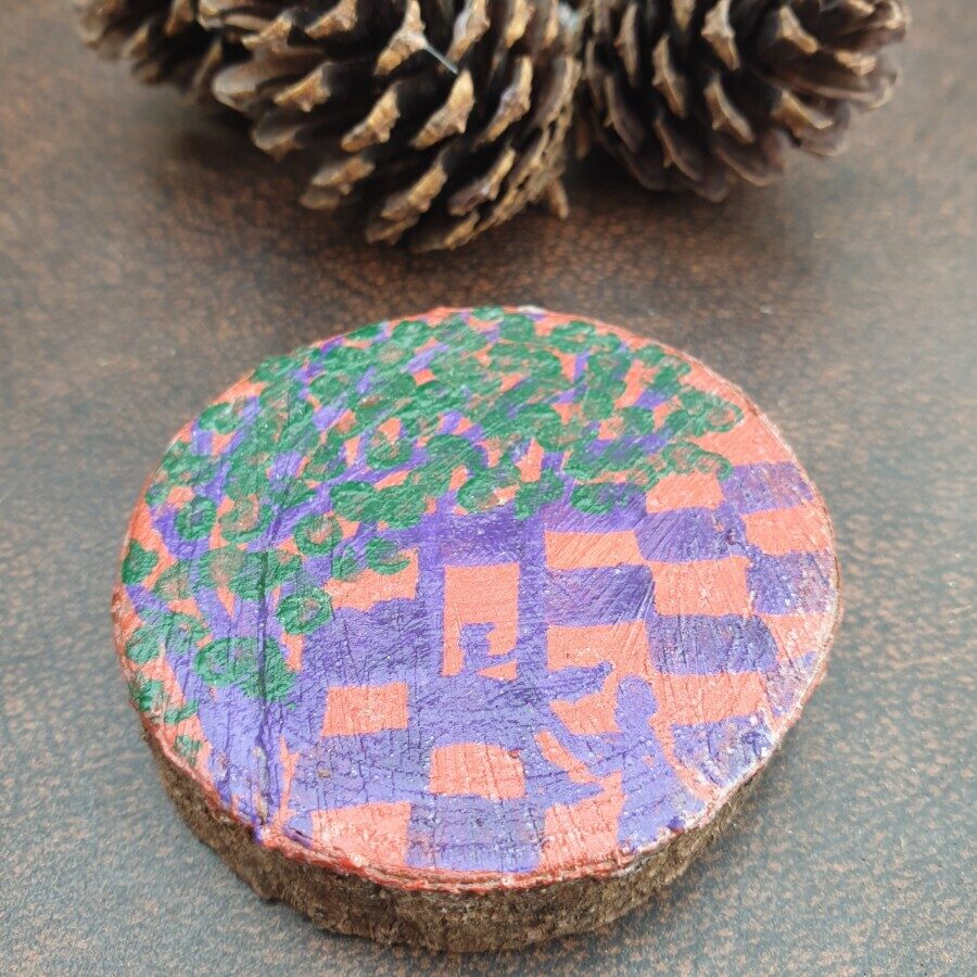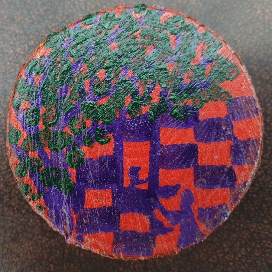 Chequered Romeo and Juliet is an acrylic painting on a piece of spruce - this wood was sourced from our own wood at Stempster, Caithness. Part of the Whimsical Paints collection.