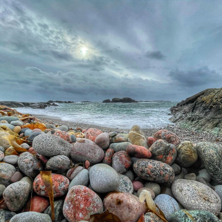 A matte aluminium print with hanging system of Columba’s Bay, Iona . Not framed.