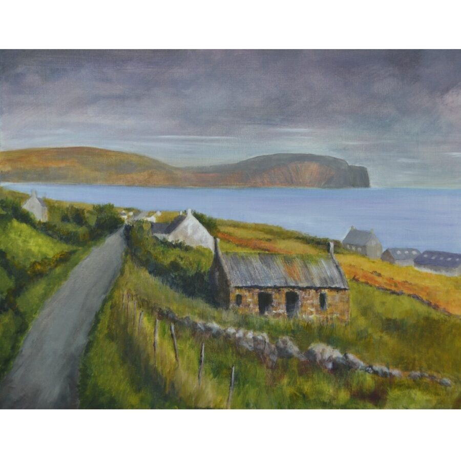 A painting of Dunnet Head in acrylic on a canvas ready to hang.