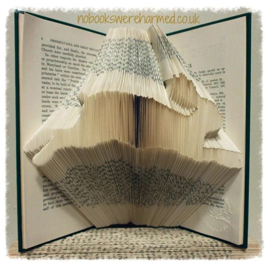 Hand folded - Never cut - Designer made - Book art created by making many hundreds of careful folds within the pages of a preowned or vintage book. Photos shown are of past pieces, most of which have gone to their new forever homes. Created with preowned & vintage books, therefore each item is unique and exact colours & final appearances naturally vary from book to book.