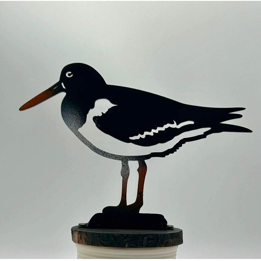 A delightful metal Oystercatcher sculpture produced in steel from sketches by Ian Williams.