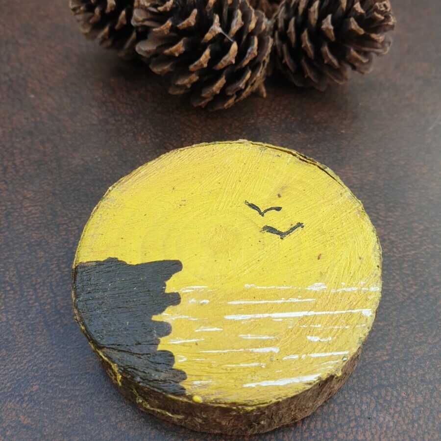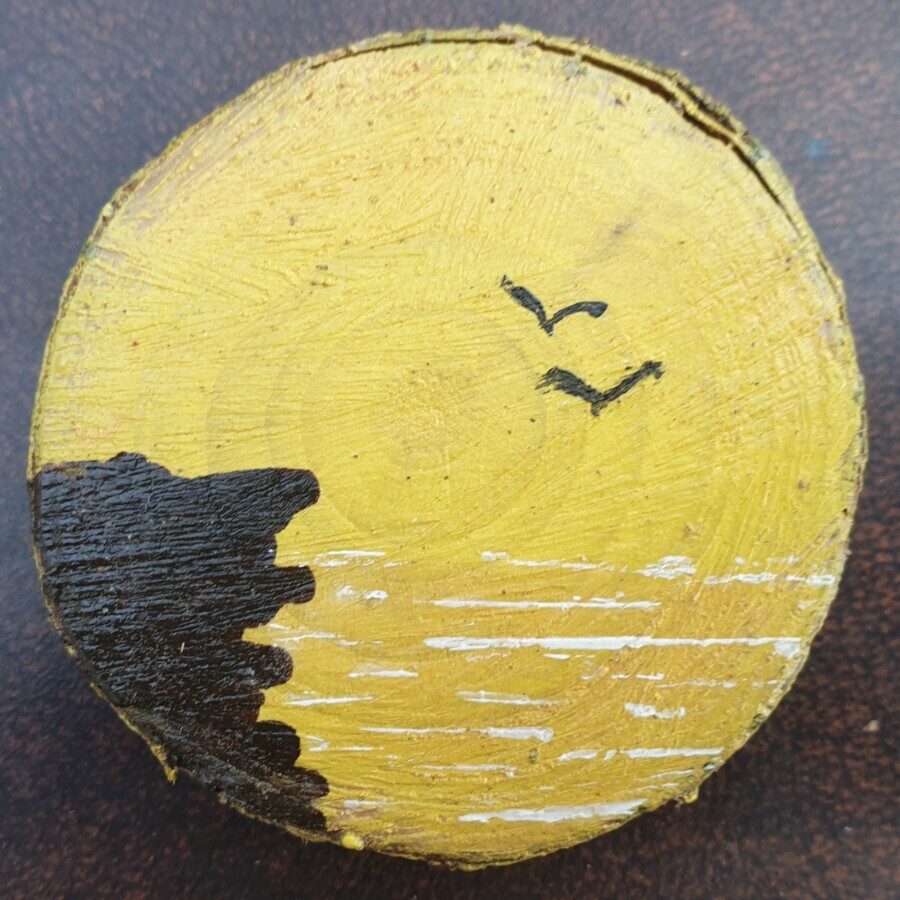 Midsummer Midnight is an acrylic painting on a piece of spruce - this wood was sourced from our own wood at Stempster, Caithness. Part of the Whimsical Paints collection.