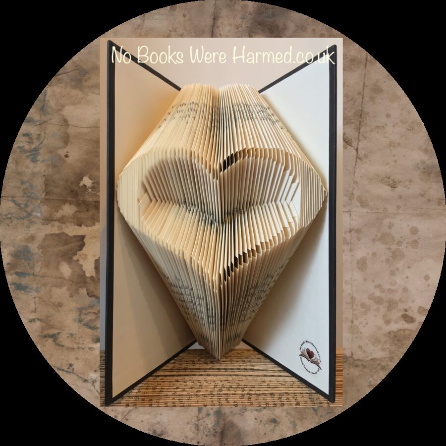 Hand folded - Never cut - Designer made - Book art created by making many hundreds of careful folds within the pages of a preowned or vintage book. Photos shown are of past pieces, most of which have gone to their new forever homes. Created with preowned & vintage books, therefore each item is unique and exact colours & final appearances naturally vary from book to book.