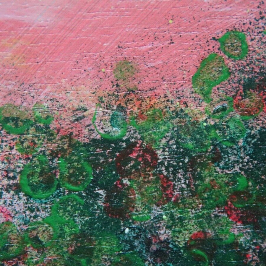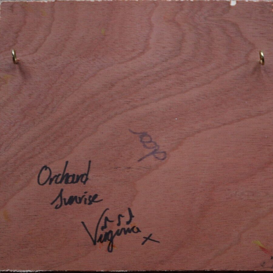 Orchard Sunrise is an acrylic on Plywood - an offcut from a cupboard. This comes with eyelets ready to be hung.