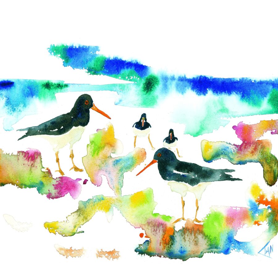 Print of an original painting of oyster catchers, mounted and backed print on best quality art paper. 285-310 weight grade paper.
