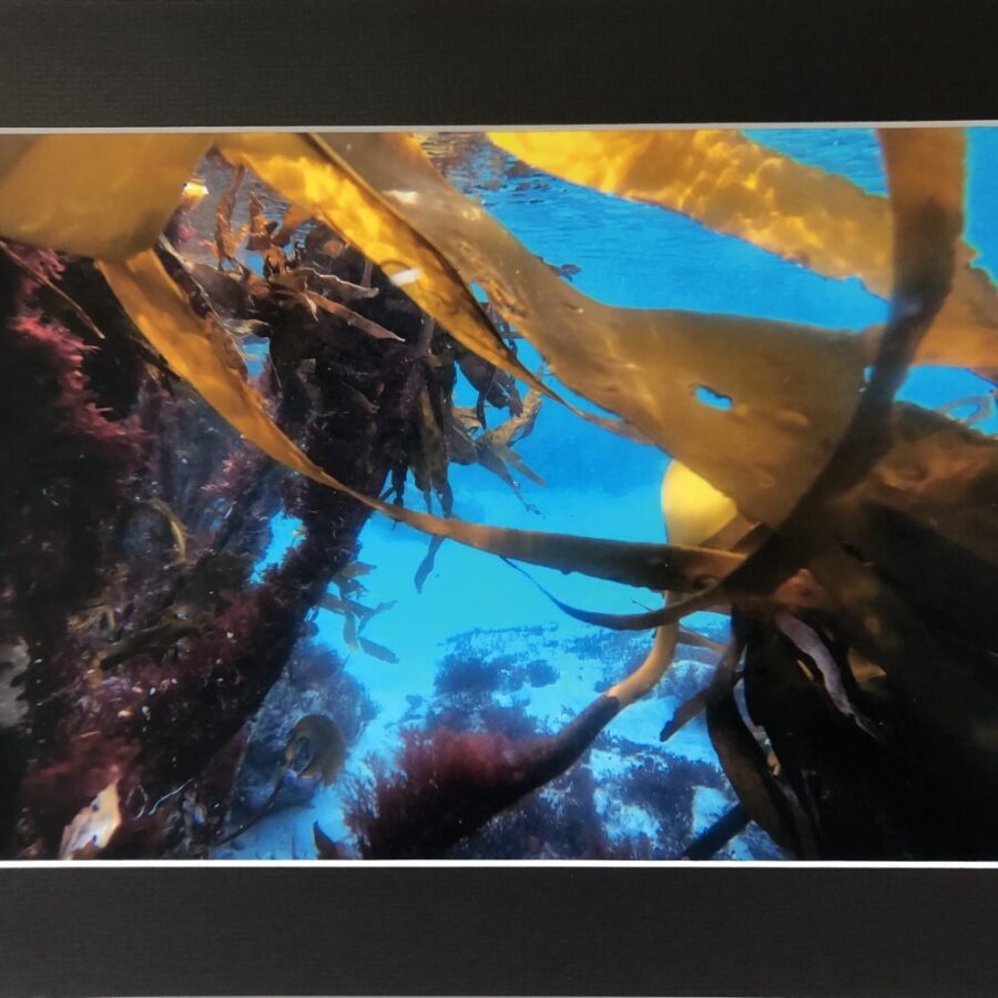 An underwater photo print from Gulberwick beach, Shetland. A4 photo print, mounted to fit into a standard frame size 11 x 14 inch. The photos are professionally printed with a lustre finish, they come sealed in a cello pouch.