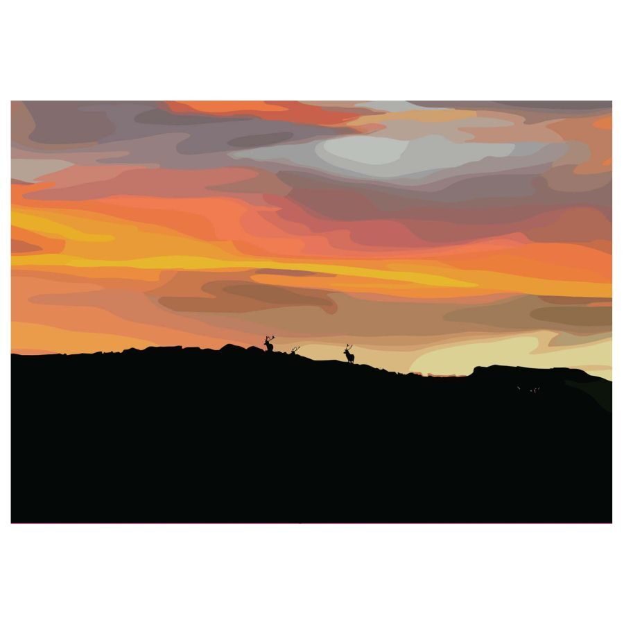 A pack of 4 vectorised photo images. Images in this pack are Passing place at Isleornsay, Deer at Dawn, Moody skies over the Sound of Sleat and Early morning at Isleornsay Bay. The images are all photographs Elaine has taken but they have been vectorised giving them a contemporary twist. The prints are A5 (approx 15cm x 21cm) or A4 (approx 21cm x 30cm) and are printed on 350gms silk card.