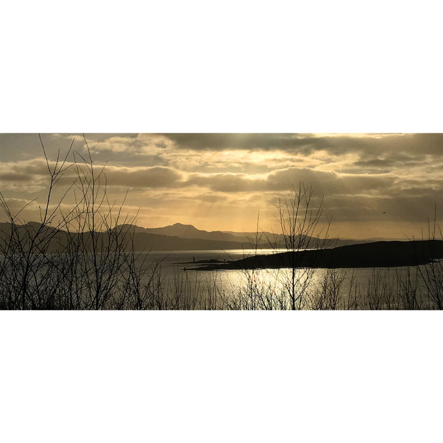 This stunning colour photograph is of the winter sunshine over the Sound of Sleat, taken from the view point on the way to Leitir Fura clearance village. The photo is panoramic in dimension 50 cm x 20 cm and will have a 10 mm white border around the edge to id mounting and framing. The photo is printed on C-Type Matte photographic paper.