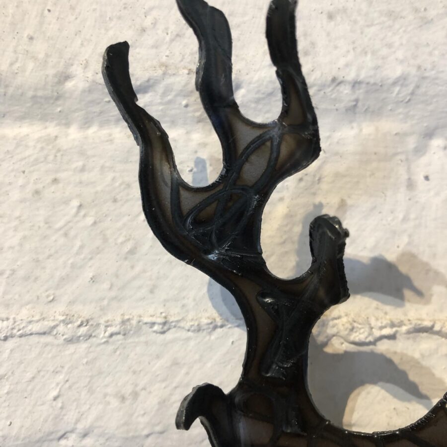 Lacquered steel stag keyholder, with and without tartan decoration. Hand cut and welded using cutting equipment and every piece is unique with some amazing colours and surface textures being developed from the heat treatment used. Each piece will have slight variations in colour, finish and shape. Each piece, unless it is stainless steel, is then lacquered to lock in the surface patina and gives a durable protective finish.