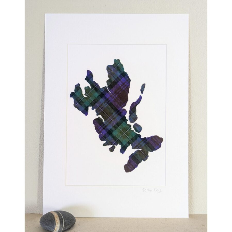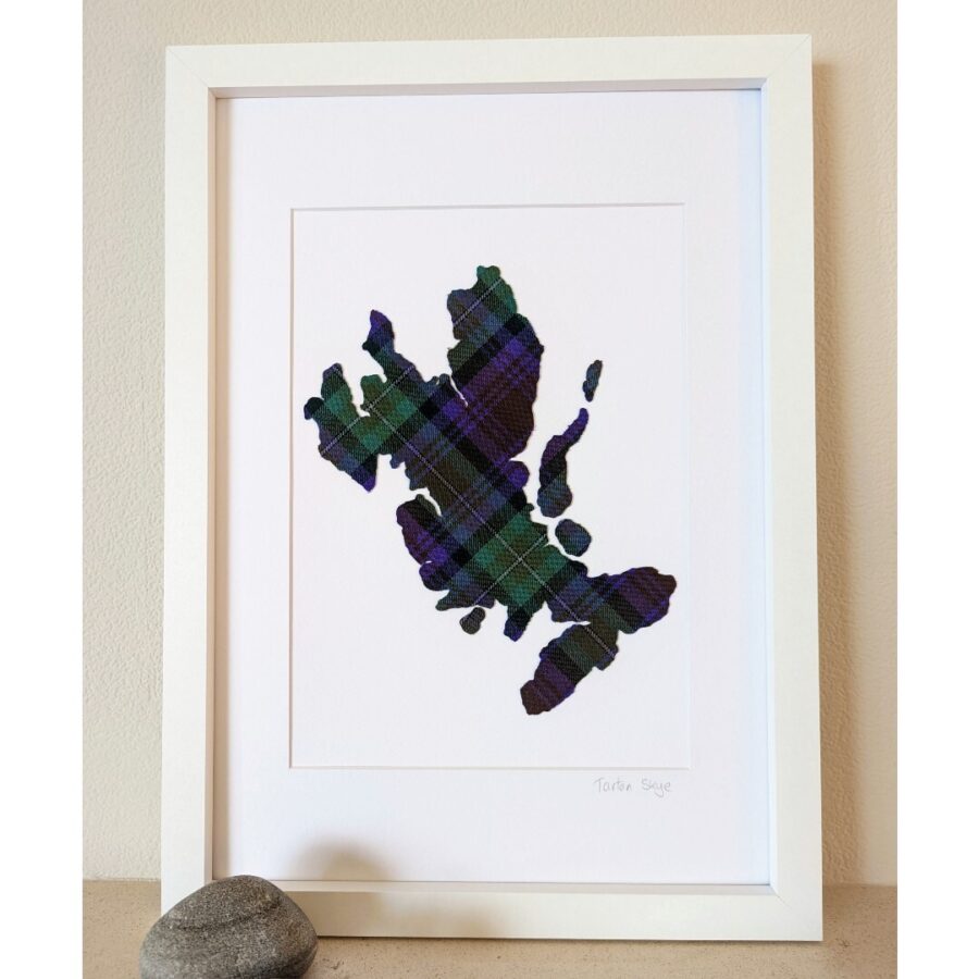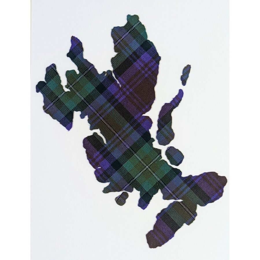 A stunning, handmade map of the Isle of Skye and surrounding islands. The map is cut out from genuine Isle of Skye tartan and mounted on a sturdy backing board, ready for framing. The picture fits any standard 30 cm x 40 cm (12 x 16 inch) frame. NB. Avoid hanging the picture in direct sunlight.