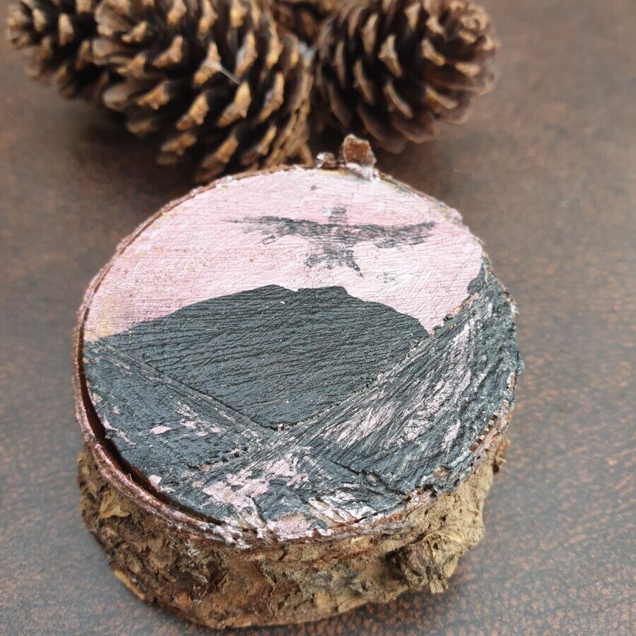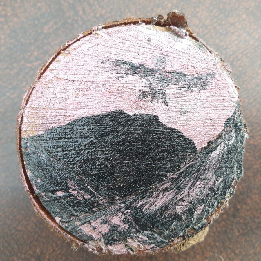 The Spirit of the Raven Banner is an acrylic painting on a piece of spruce - this wood was sourced from our own wood at Stempster, Caithness. Part of the Whimsical Paints collection.