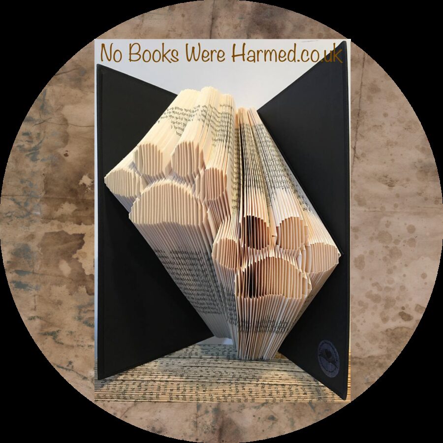 Hand folded - Never cut - Designer made - Book art created by making many hundreds of careful folds within the pages of a preowned or vintage book. Photos shown are of past pieces, most of which have gone to their new forever homes. Created with preowned & vintage books, therefore each item is unique and exact colours & final appearances naturally vary from book to book.
