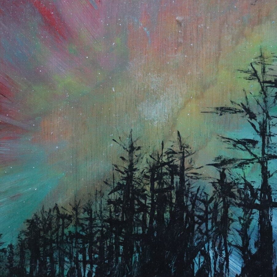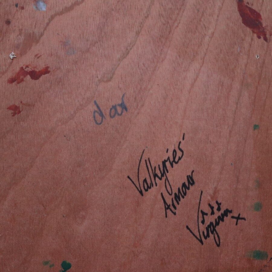Valkyries' Armour is an acrylic on Plywood - an offcut from a cupboard. This comes with eyelets ready to be hung.