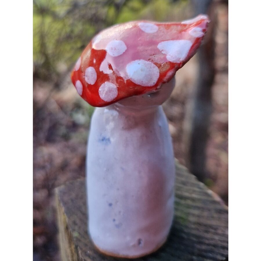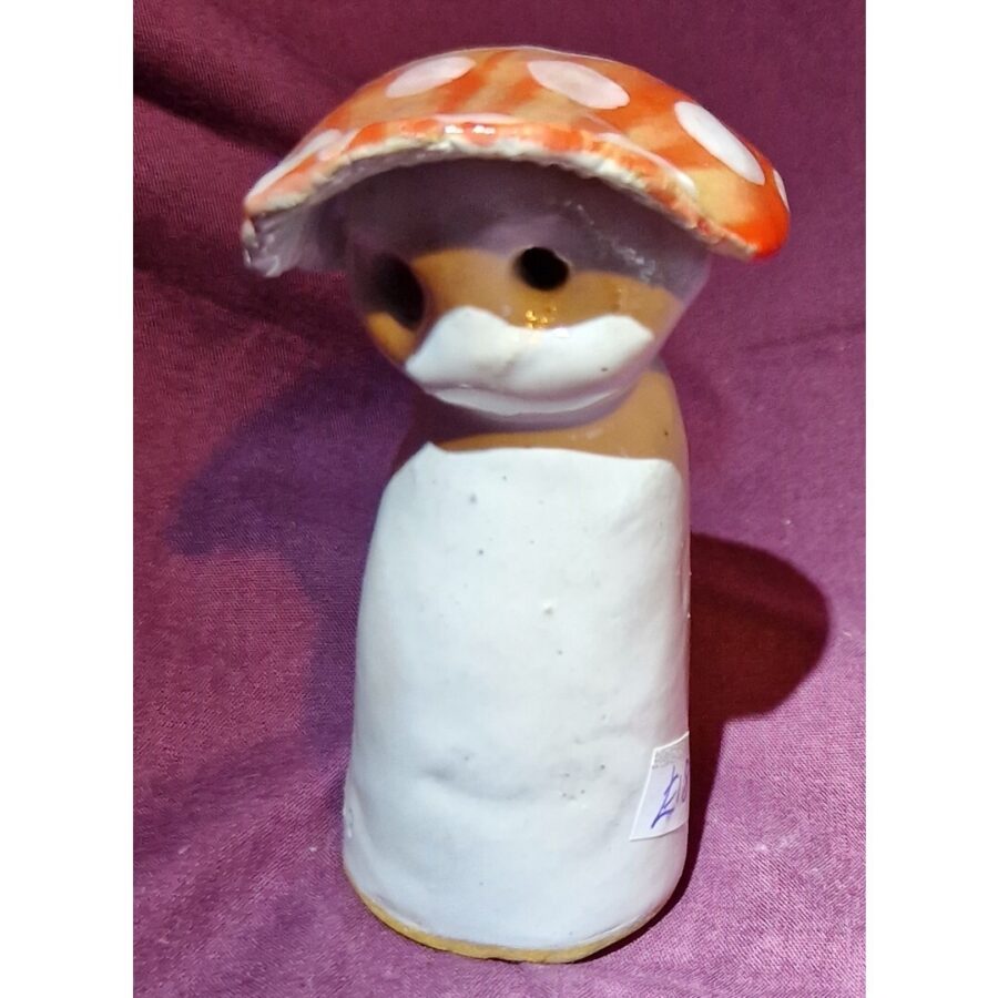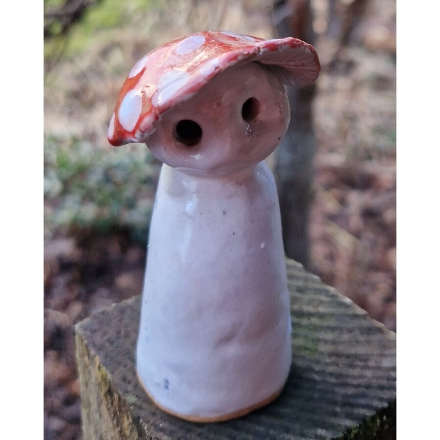 A quirky toadstool character who would look great in the garden or home. It's hand made and stoneware glazed.
