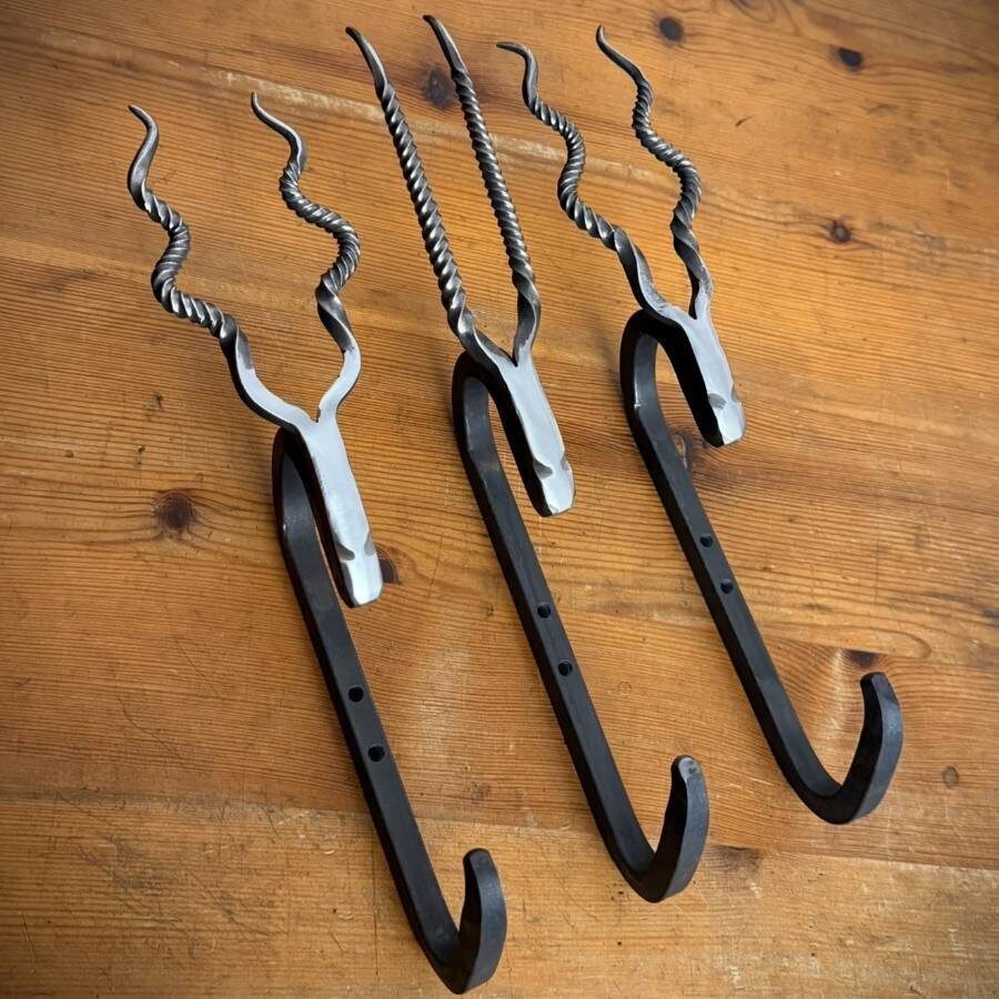 Hand forged animal head hooks perfect to hang up all your jackets, hats, dog leashes and anything else. Made from mild steel and shined to the highest standards they give any room an extra pop of bespoke style and function. They come in 4 designs, ram, stag, goat and straight horns (select your preference using the drop down). They are made to order from my forge in the heart of the Scottish highlands.