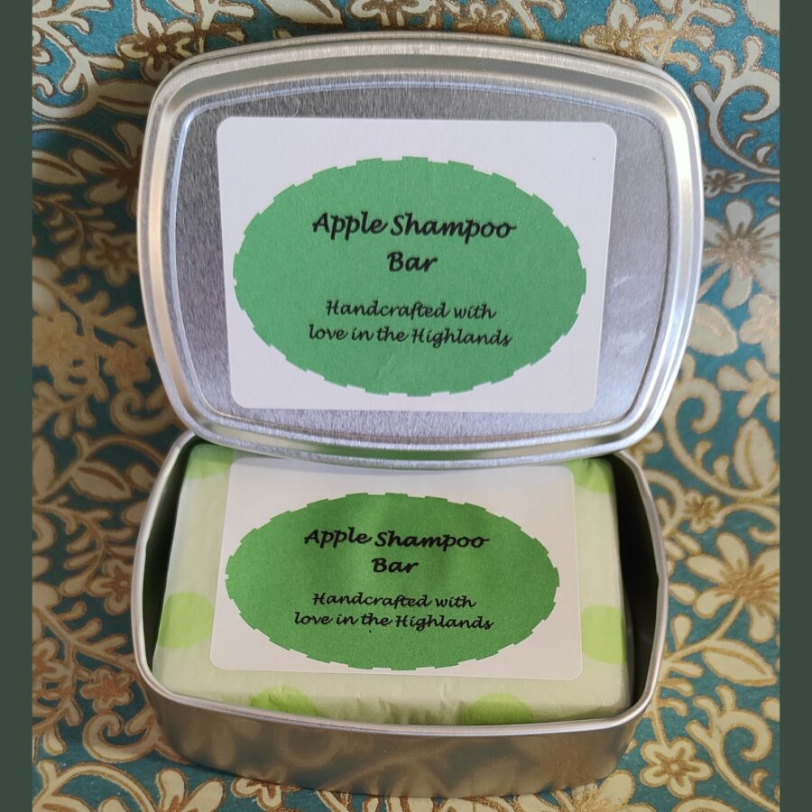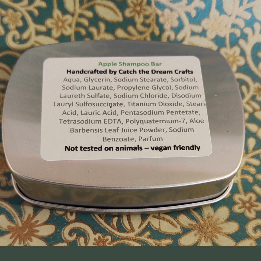 The fresh scent of this shampoo will leave you thinking of bright green, juicy apples ...perfect for make your hair feel fresh and clean. Combined with the Apple Conditioner Bar (available seperately) your hair will be looking and smelling fresher than ever. An easy way to cut down on plastic, this vegetable based solid shampoo is supplied in a handy aluminium tin, meaning it can be left in the shower. Totally vegan and free from the surfactant Sodium Lauryl Sulfate. Also ideal for travelling as no worrying about liquid allowance or spillages.