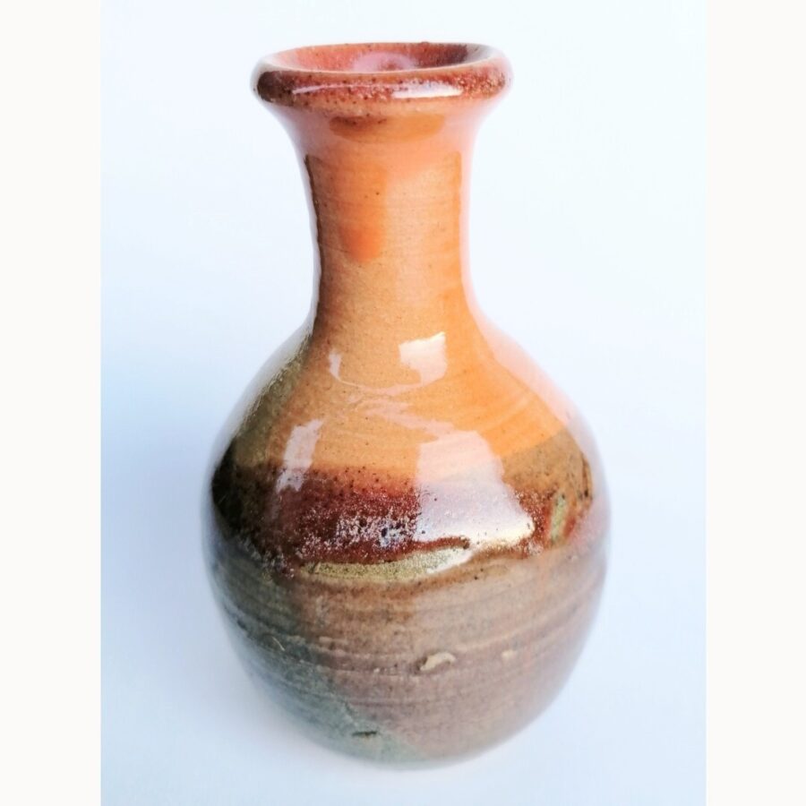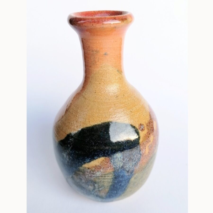 A small stoneware bud vase in autumnal colours. Hand thrown. Dishwasher and microwave safe.