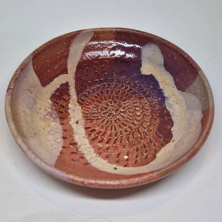 A small stoneware garlic and ginger grating plate in Autumn colours. Hand thrown on the wheel. Food safe. Dishwasher & microwave safe.