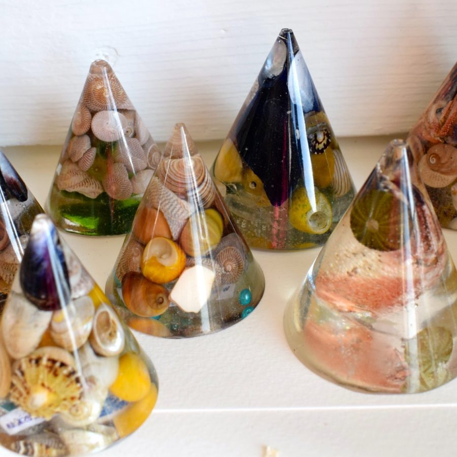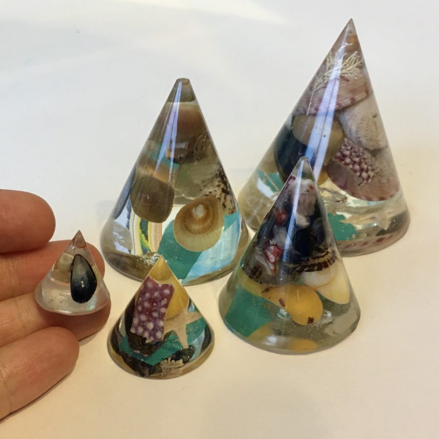 Decorative beach cones, which could also be a ring holder. These are created using beach finds collected from the coast around The Shetland Islands. Each one is original and comes in a blue organza gift pouch.