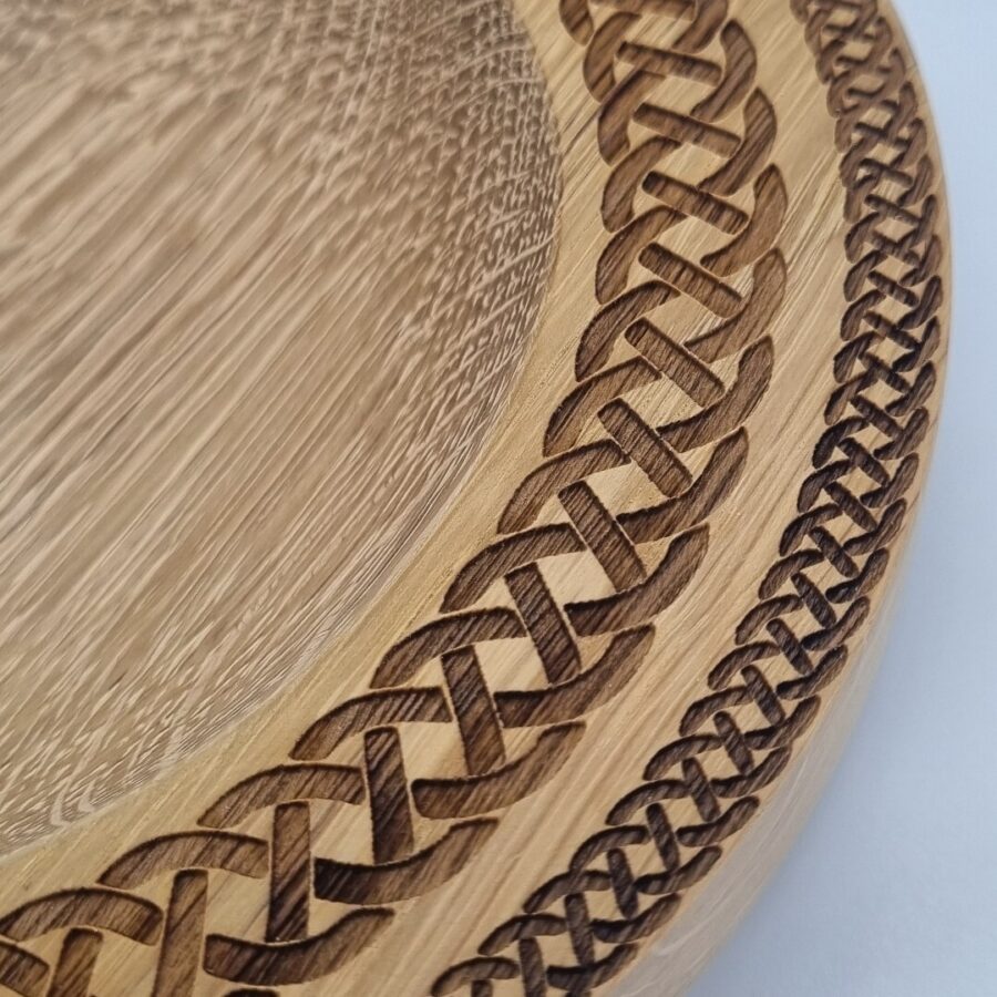 A beautiful oak bowl with a Celtic design burnt onto the rim, it is highly polished for a super smooth feel.