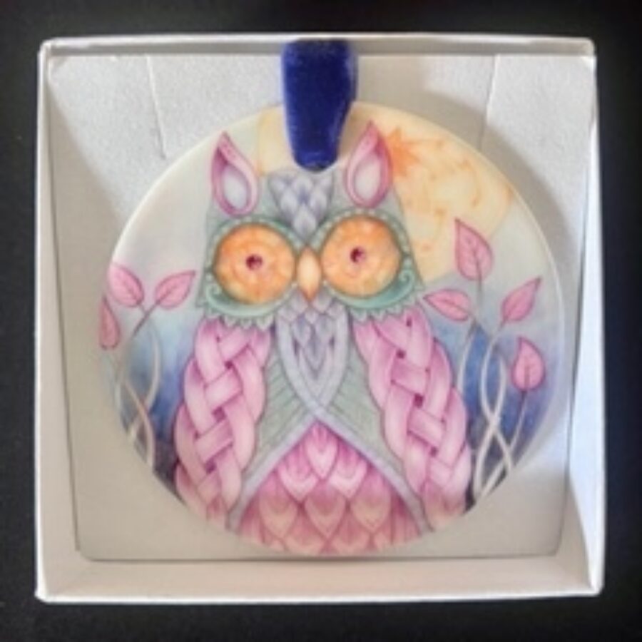A beautiful ceramic hanging decoration featuring an original design of a Celtic Owl by Highland Celtic Art. The ribbon colour may vary and is 1 cm in diameter. Each hanger comes boxed.