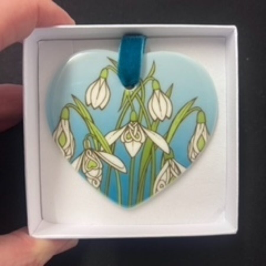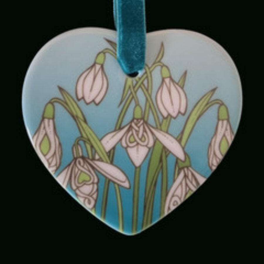 A beautiful ceramic hanging decoration featuring an original Celtic snowdrops design by Highland Celtic Art. The ribbon may vary but will either come in a complimentary tartan or velvet and is 1 cm in diameter. Each hanger comes boxed.