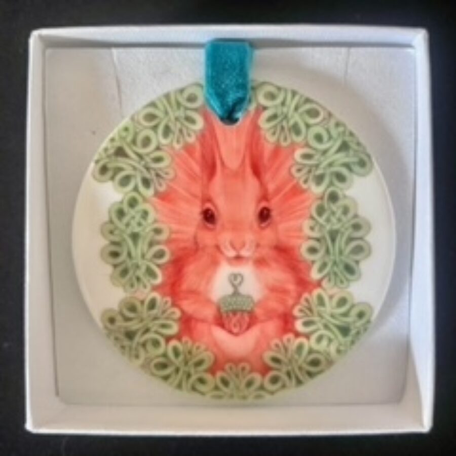 A beautiful ceramic hanging decoration featuring an original design of a Celtic Squirrel by Highland Celtic Art. The ribbon colour may vary and is 1 cm in diameter. Each hanger comes boxed.