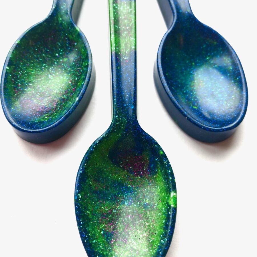 Decorative Aurora borealis spoon. Handcrafted using resin, metallic pigments, glow in the dark and imagination.
