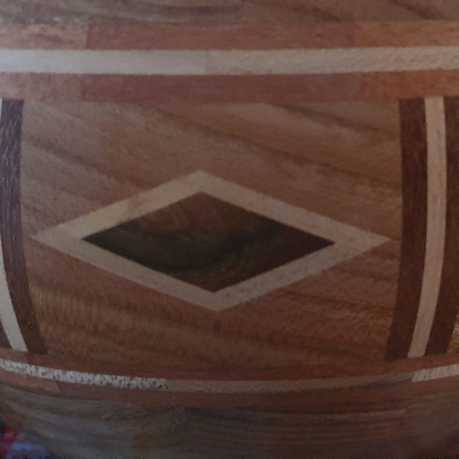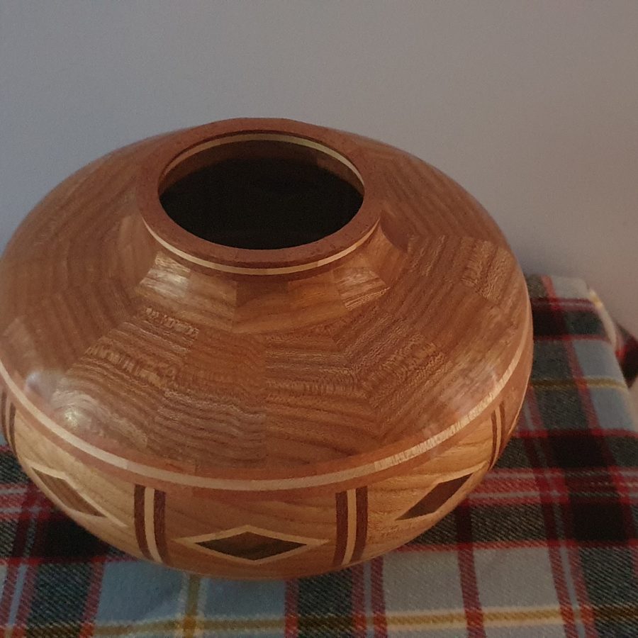 Elm wooden vessel with diamond features.