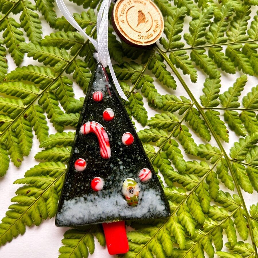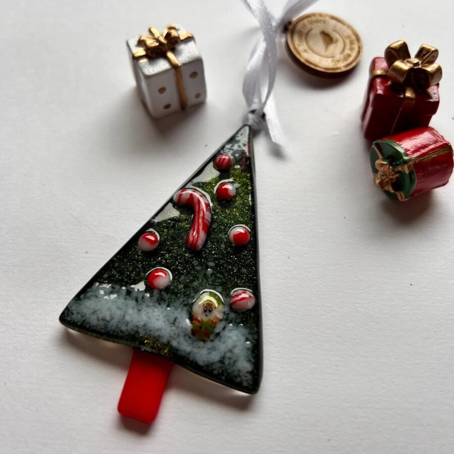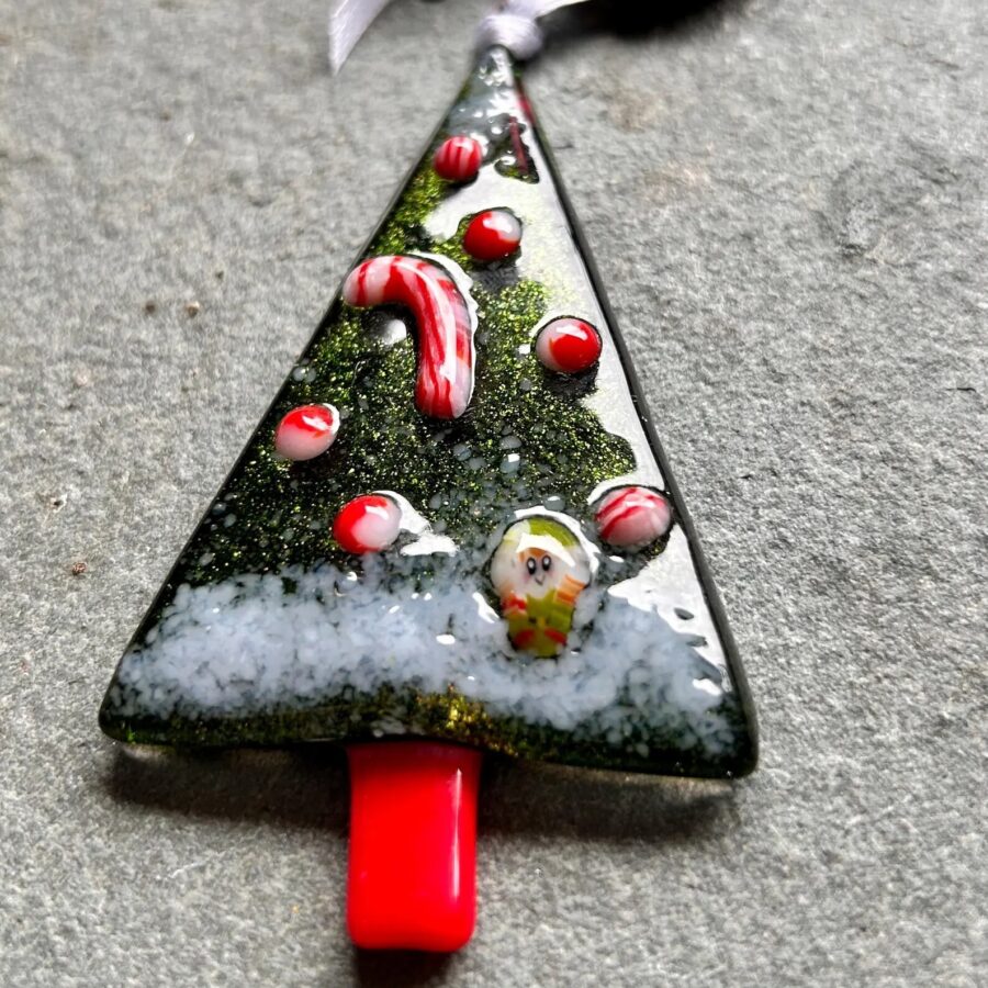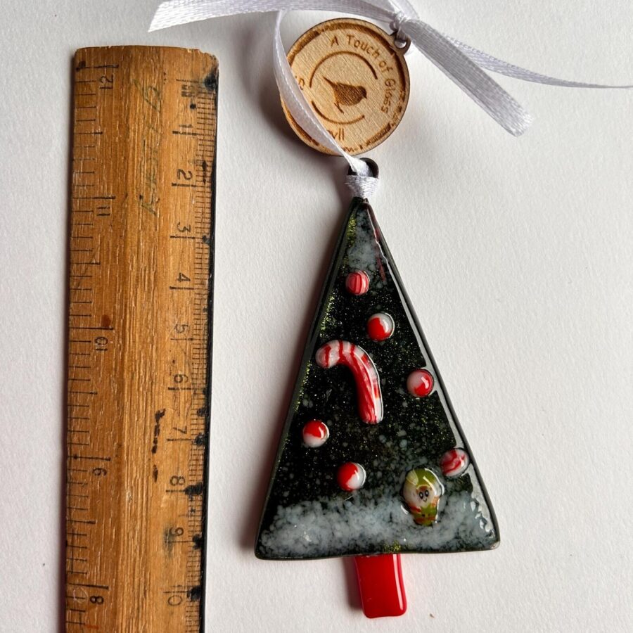 Fused Glass Christmas Tree Decoration With Candy Cane