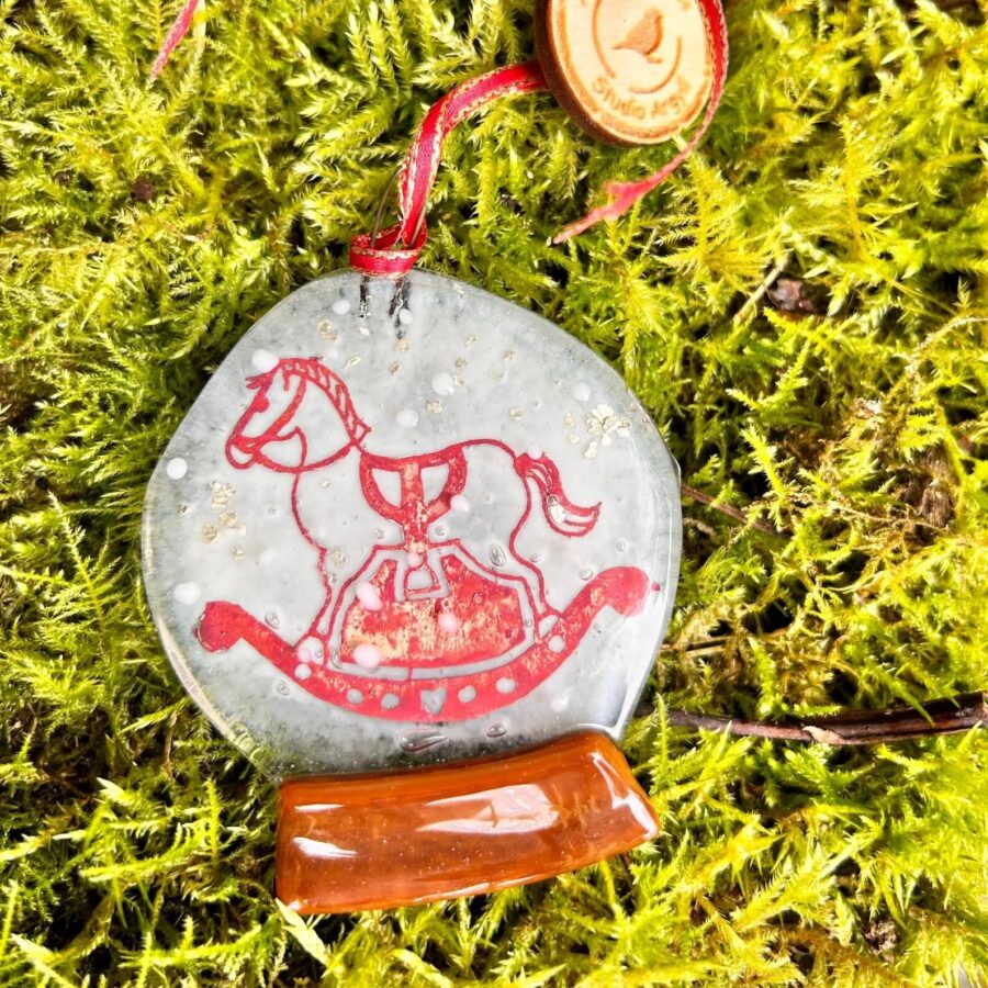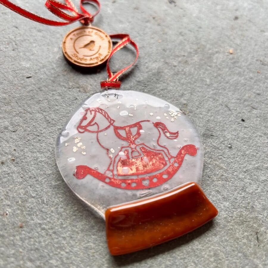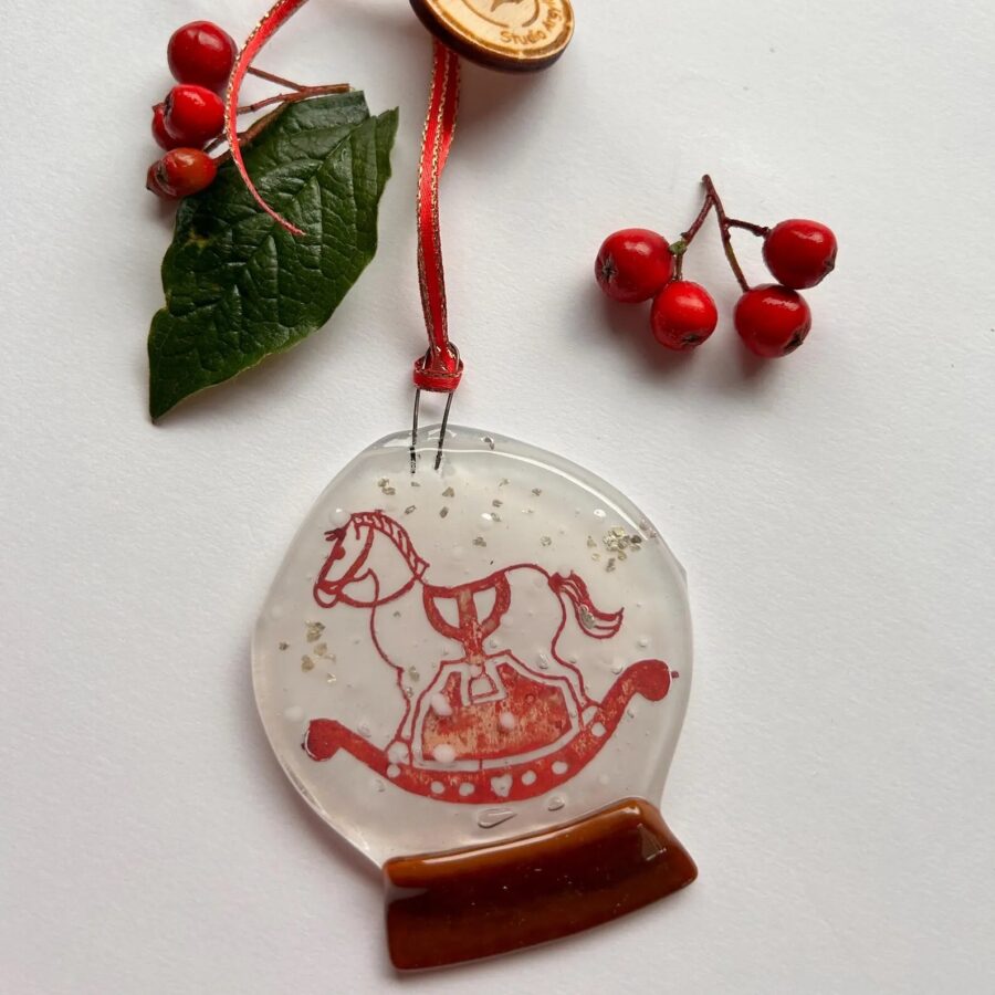 Fused Glass Rocking Horse Snow Globe