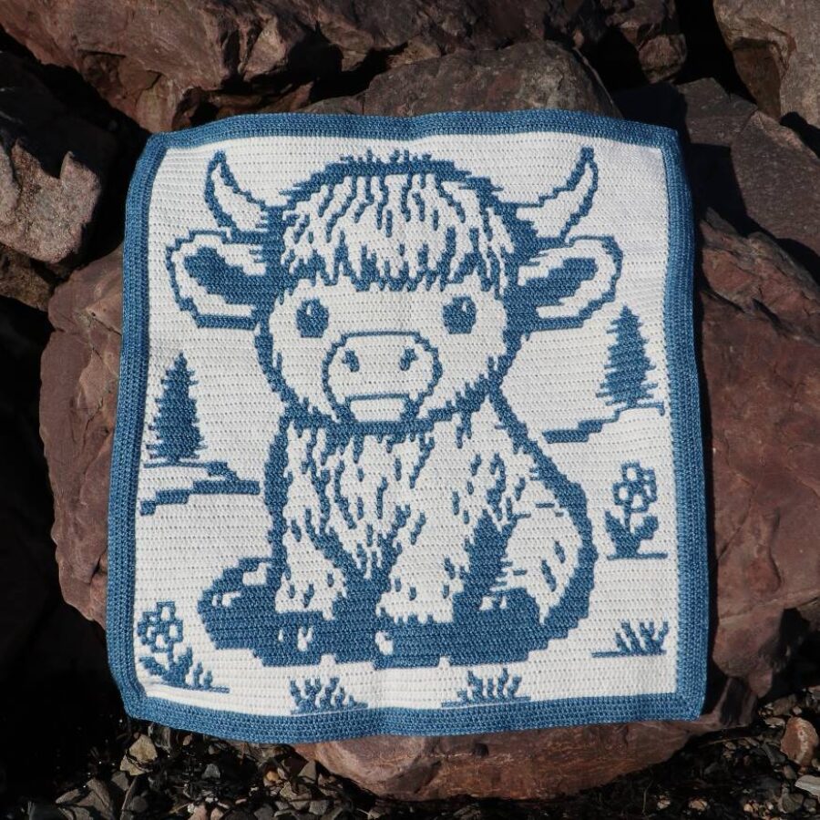 Looking for a unique and special crochet blanket for a baby or child? Look no further than this cute highland cow crochet blanket. The blanket would keep your child warm, would soften any surface he or she was placed on and it would look amazing wrapped around him or her. As it is crochet with the mosaic technique, it’s extra soft & thick.