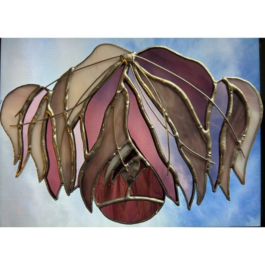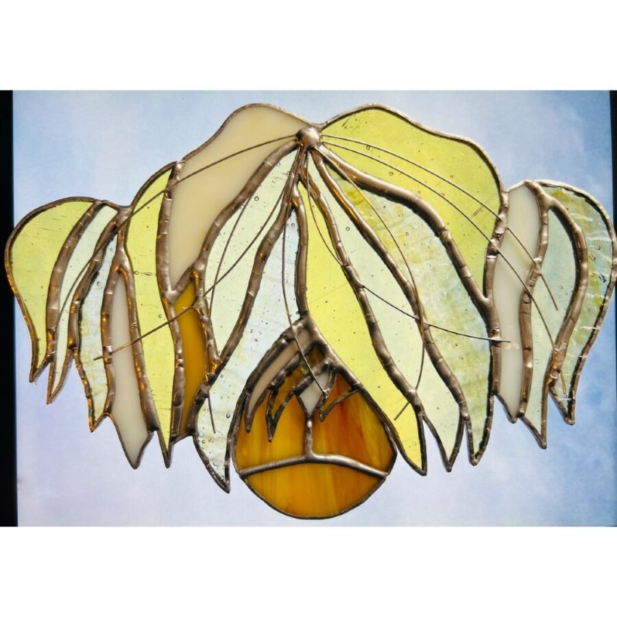 Highland Cow suncatcher. Handmade with stained glass. Suitable for window hanging and supplied with a clear suction window hook. Available in different colour-ways, please state your colour preference in the comment box on ordering.