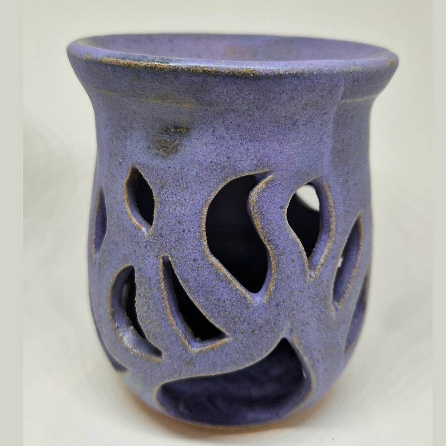 A stoneware oil burner in matt purple. Hand thrown on the wheel, cut out by hand. Dishwasher & microwave safe.