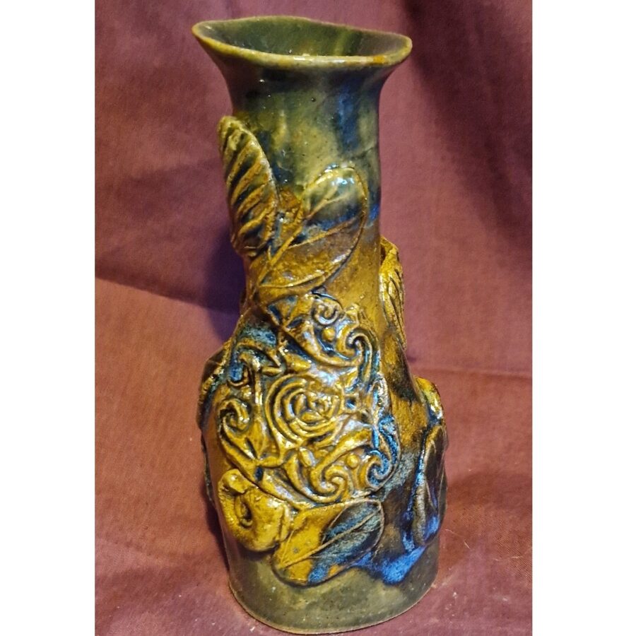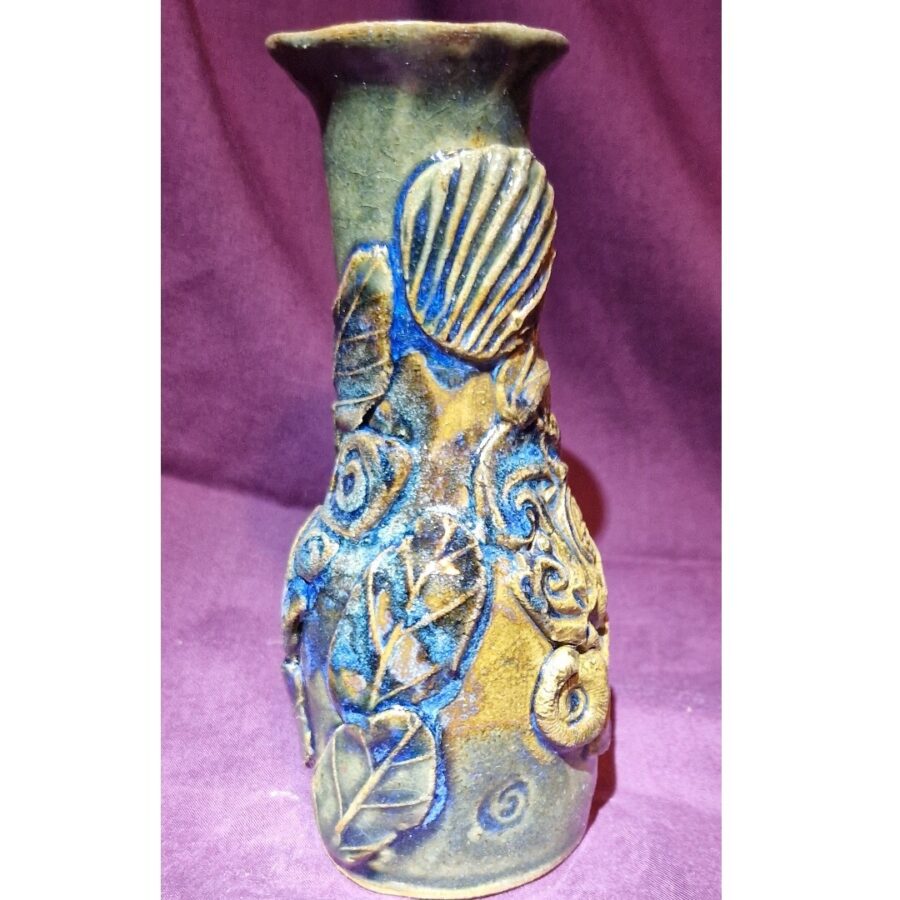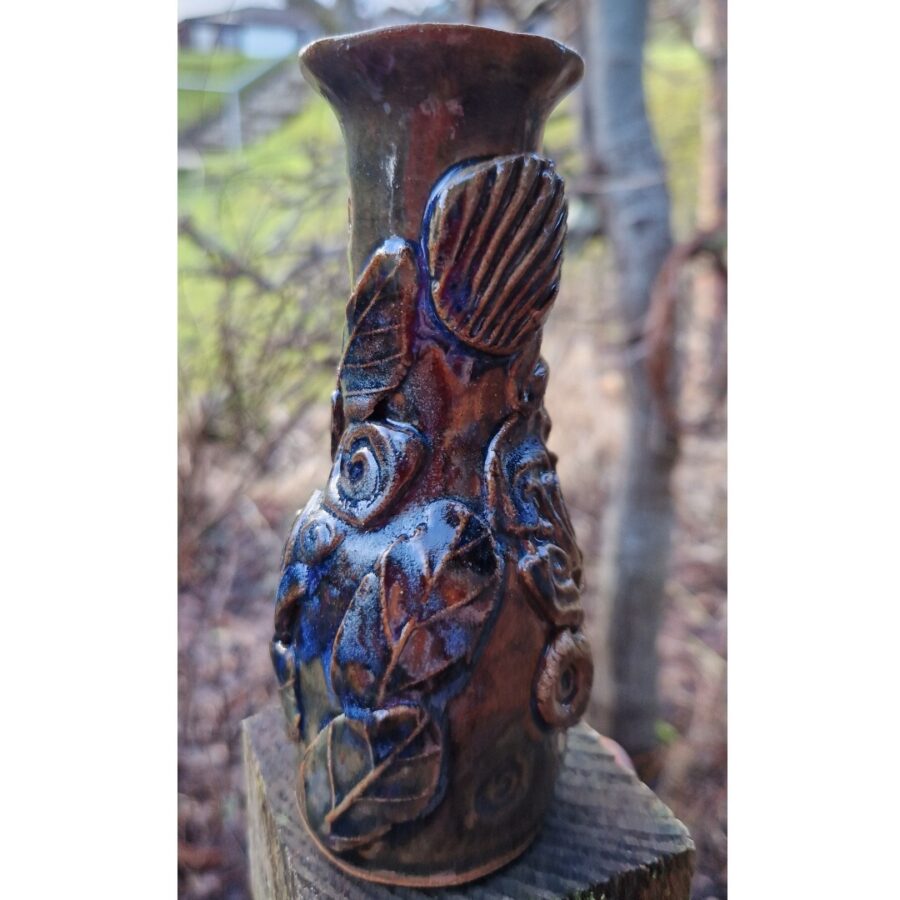 This nature inspired stoneware vase is hand made and suitable for floral displays.