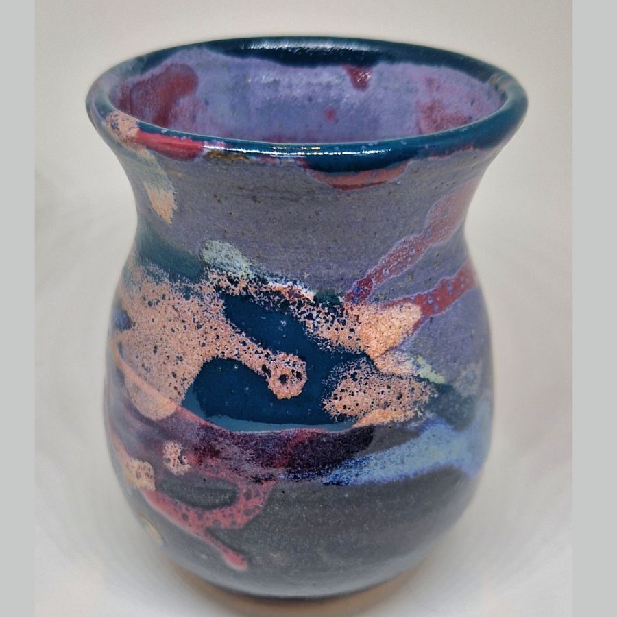 A stoneware vase in colours inspired by the Northern lights. Hand thrown. Dishwasher & microwave safe.