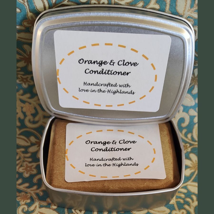 Continue the fruity and spicy aromas of orange and clove...perfect for conditioning your hair after using the solid orange and clove shampoo bar. An easy way to cut down on plastic, this vegetable based solid conditionert is supplied in a handy re-fillable aluminium tin, meaning it can be left in the shower. Totally vegan and free from the surfactant Sodium Lauryl Sulfate. Also ideal for travelling as no worrying about liquid allowance or spillages.