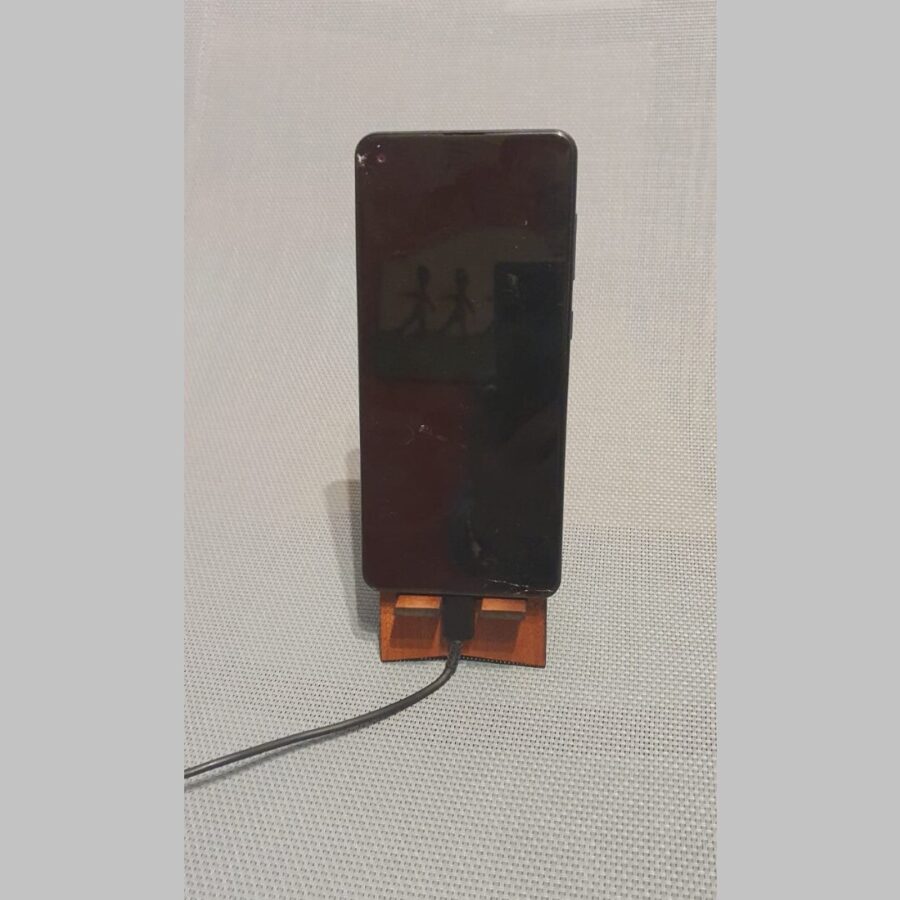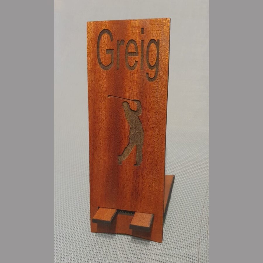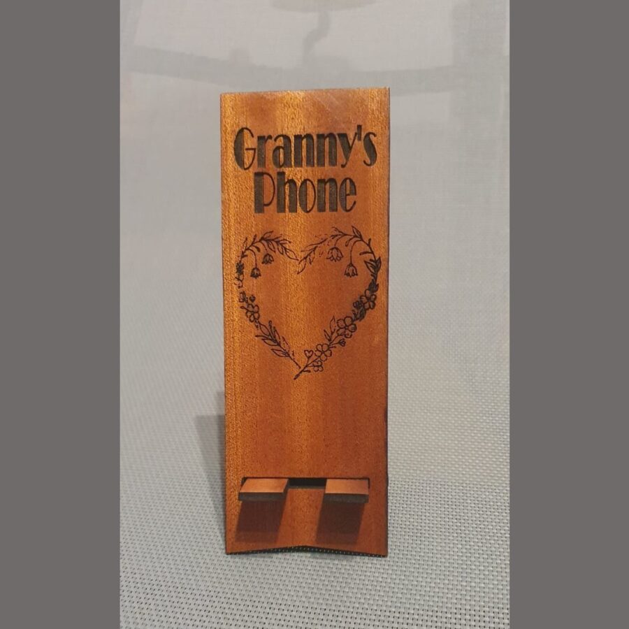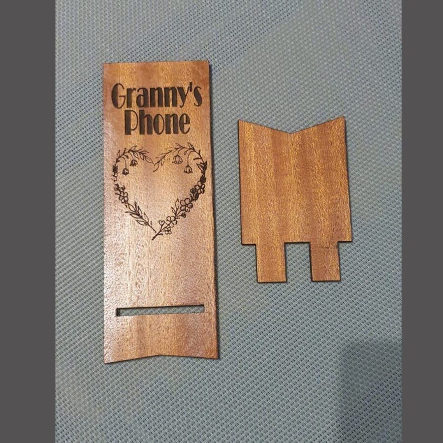 Personalised mobile phone holder, made out of either light or dark hardwood. See photos for examples, but you choose your preferred text and image. Use the drop down to choose the colour and add your text and design into the comment box on ordering.