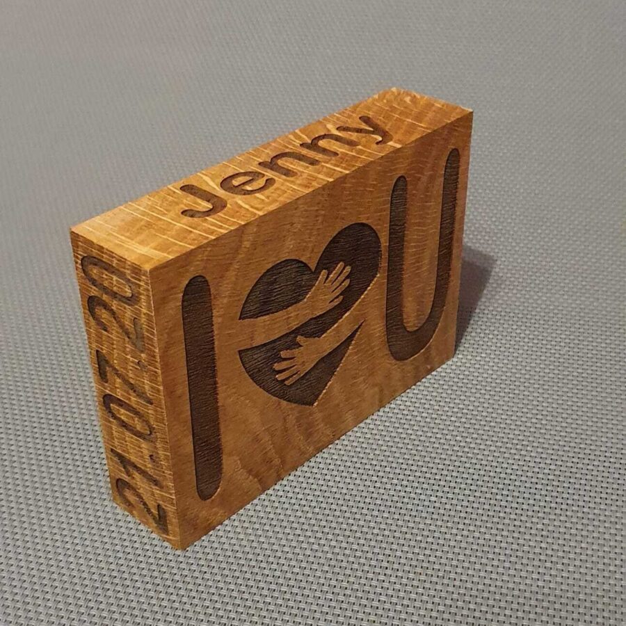 Personalised Valentine solid oak blocks. State your chosen names and/or date in the comment box on ordering.