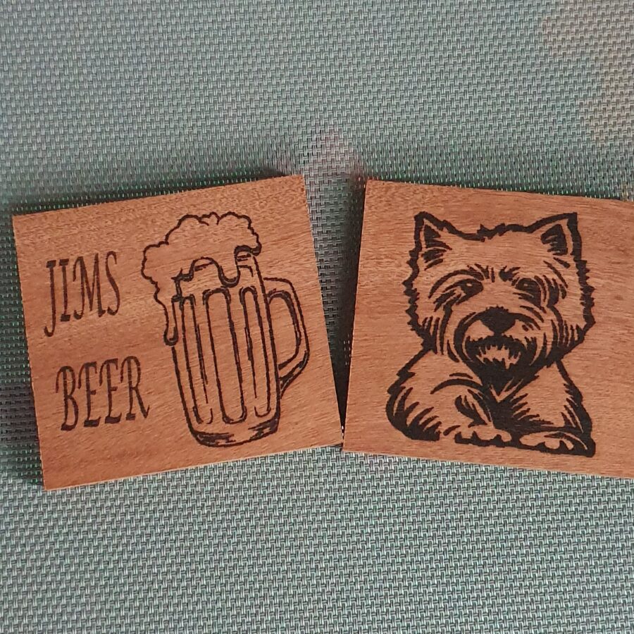 Personalised wooden coaster made out of hardwood or mahogany finished with a food safe oil . See photos for examples, but you choose your preferred text and design of your coaster. Add your text and design into the comment box on ordering.
