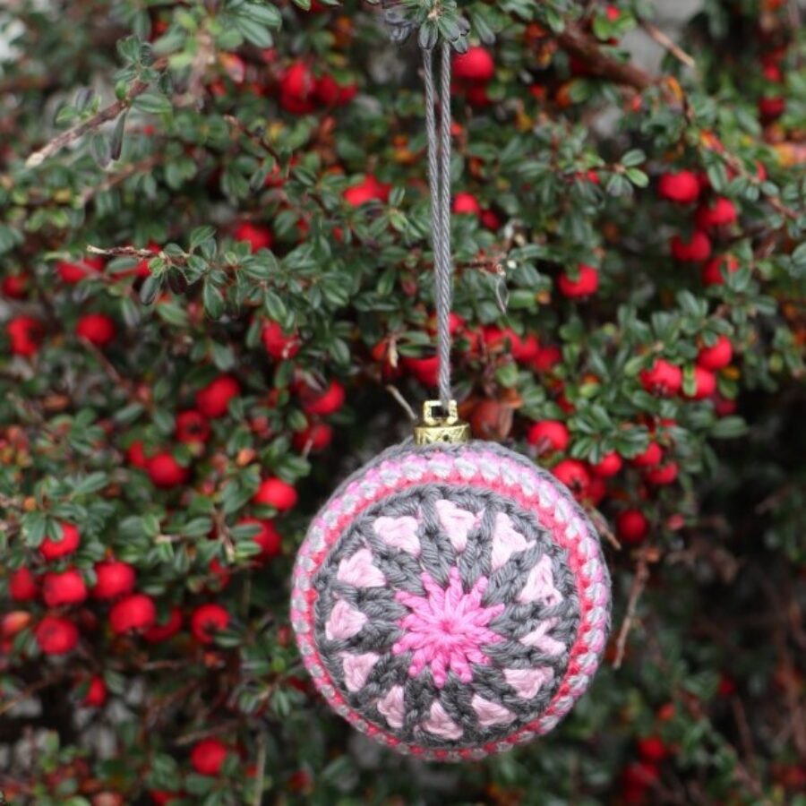 Add a splash of colour to your Christmas tree or window decoration with this crochet Christmas bauble. The bauble is lightweight shatterproof plastic and decorated with cotton thread in various colours. A glittery thread is also used to give the bauble an extra sparkle. The baubles measure approx. 6cm in diameter. This colourful ornament is perfect for a gift, something handmade and special for any Christmas décor.