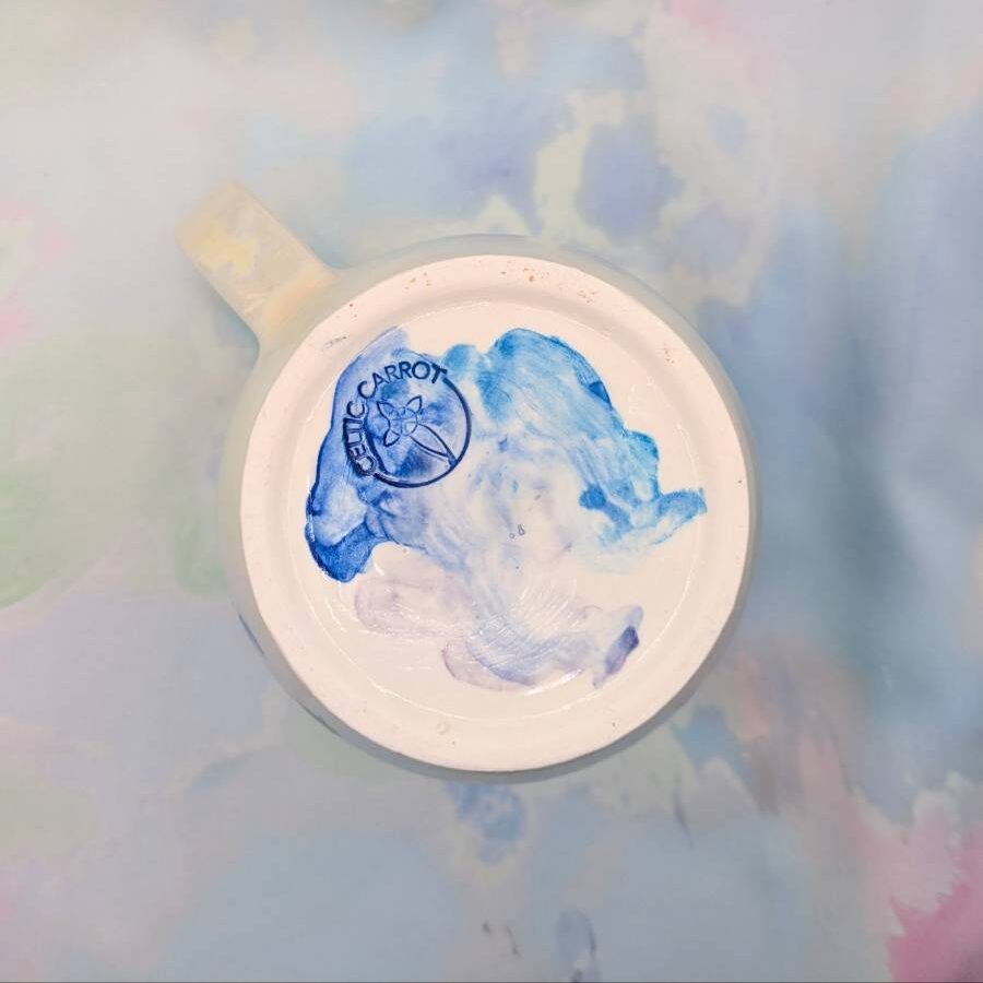 Each mug is handmade by Sarah, and decorated with underglaze watercolour detail. Then the mug is put through four firings, to a maximum of 1260 degrees celsius: the first firing turns the clay into ceramic and is then followed with a glaze firing. The last two firings are to add the bees and then the mother of pearl lustre which give an iridescent finish. This firing is done outside because of any fumes released from the lustre. The whole process from start to finish takes about a week and is a true labour of love.