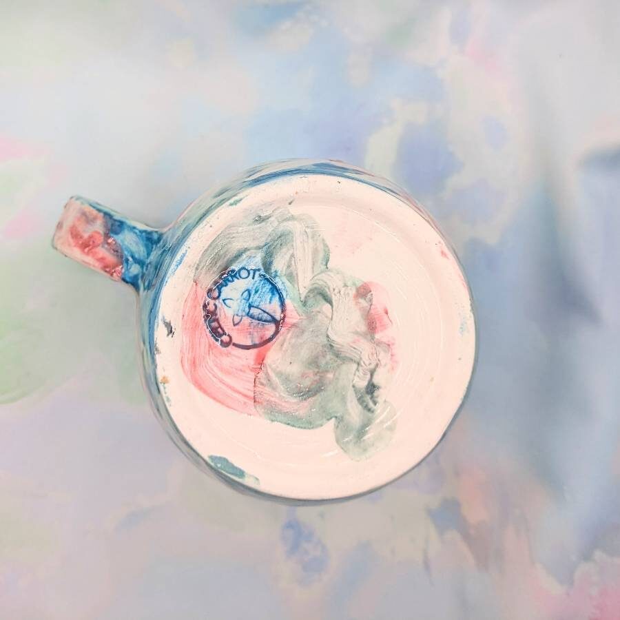 Each mug is handmade by Sarah, and decorated with underglaze watercolour detail. Then the mug is put through four firings, to a maximum of 1260 degrees celsius: the first firing turns the clay into ceramic and is then followed with a glaze firing. The last two firings are to add the bees and then the mother of pearl lustre which give an iridescent finish. This firing is done outside because of any fumes released from the lustre. The whole process from start to finish takes about a week and is a true labour of love.